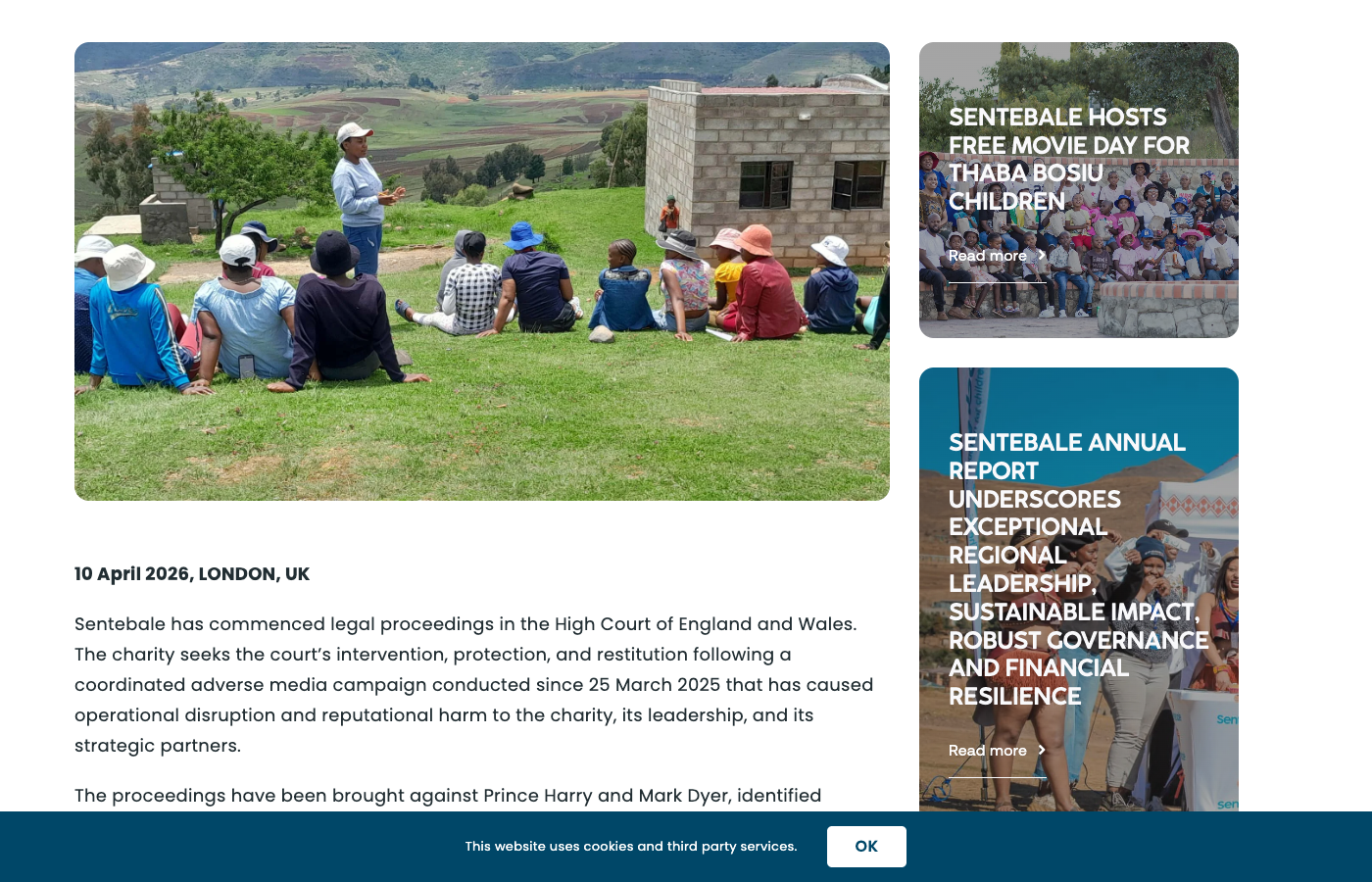Anticipating the obvious question about why a charity serving vulnerable youth is pursuing a high-profile libel suit, Sentebale's Friday statement says the legal costs "are met entirely by external funding and no charitable funds have been used." It adds that the charity's development-sector donors have "maintained 100% of their financial commitment" through the dispute and that Sentebale continues to serve approximately 78,000 young people in Lesotho and Botswana.